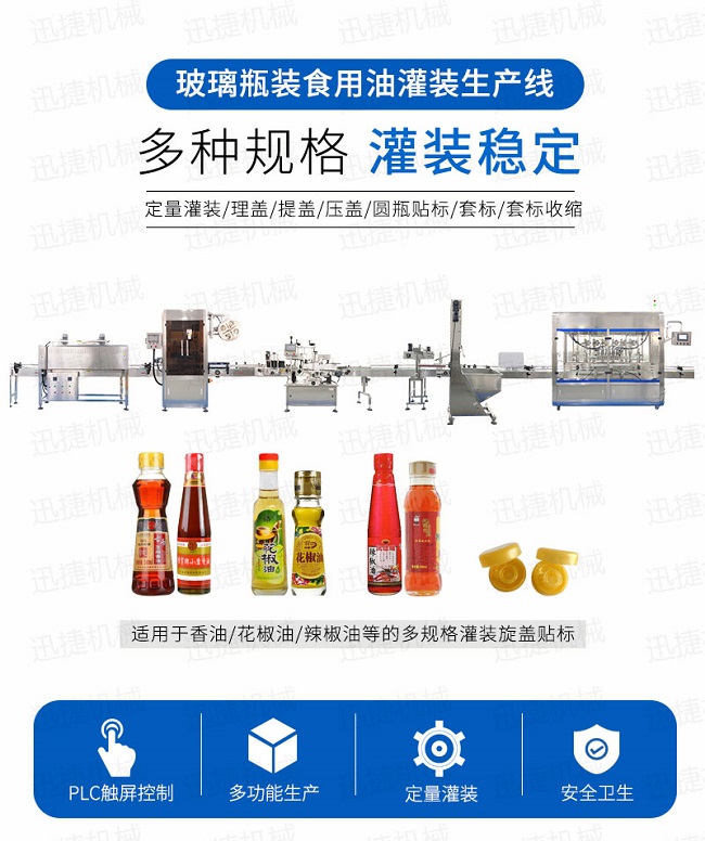 該系列灌裝機采用容積式計量灌裝原理,適用于各種規(100ml-1000ml)的南瓜籽油、榛子油、牡丹籽油、芝麻油、核桃油、山茶油、亞麻籽油、棉籽油、橄欖油、大豆油、玉米油、菜籽油等食用油灌裝。設備采用伺服驅動活塞計量,保證了 1‰的灌裝精度,在保證灌裝精度的同時,提高了 20%-35%灌裝速度,操作簡單,維護方便,節省人工成本,生產效率更高。