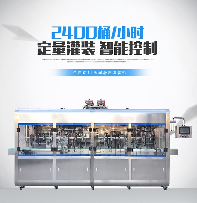 該灌裝機可以配置 高速旋蓋機 油桶貼標機 油瓶噴碼機 油壺自動自動裝箱碼垛機。組成油脂灌裝包裝流水線。高效、節能、自動化的設備。