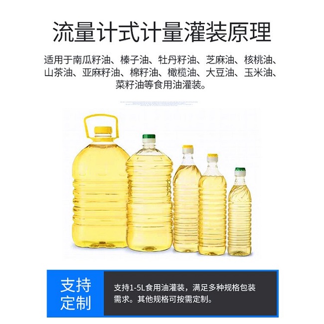 為了滿足交貨期的要求和降低工藝流通成本的需要,食用油灌裝機是通過引進創新研發新型設備在安全生產上更是成為了炙手可熱的設備,未來的食品行業、 飲料行業、且化行業等都會相繼的出現食用油灌裝機的身影在于具有誤差一鍵校正功能,計量有誤差,輸入實際出油量電腦自動校正正確輸油量,且主體核心均采用德國西門子、施耐德等國際、國內有名氣的配件,且均為國標件這樣的一款食用油灌裝機,您還有什么理由拒絕而不選擇我們迅捷機械呢?